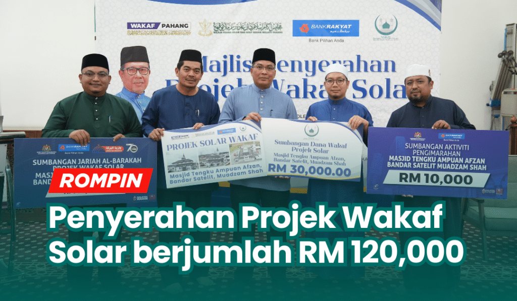 MUADZAM SHAH, 20 November 2025 – Wakaf Pahang sebagai wakil rasmi Majlis Ugama Islam dan Adat Resam Melayu Pahang (MUIP) melalui Ketua Pegawai Eksekutif Pusat Kutipan Zakat Pahang dan Wakaf Pahang, Dr. Haji Mohd Azmi b. Hj Othman telah merasmikan penyerahan Projek Wakaf Solar di Masjid Tengku Ampuan Afzan, Bandar Satelit Muadzam Shah. Inisiatif ini […]