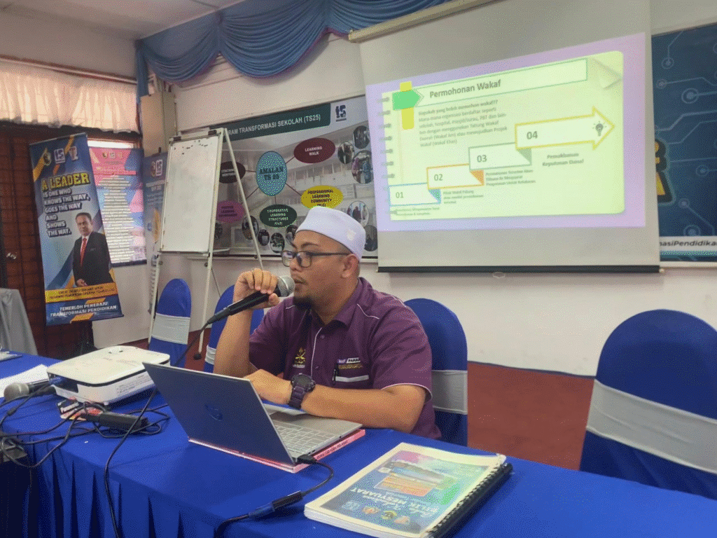 Temerloh, 22 September 2025 –Wakaf Pahang meneruskan jelajah penerangan wakaf dengan mengadakan Taklimat Wakaf di Sekolah Kebangsaan Bandar Temerloh (Integrasi) . Program ini memberi fokus kepada kefahaman konsep wakaf serta peluang warga sekolah menyumbang melalui skim Potongan Gaji Bulanan.